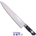 一角別作牛刀の上位モデルで、柄元に口金がついており使用時に汚れが柄に入りにくくなっています。