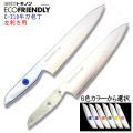 C-210牛刀は別名シェフナイフと呼ばれる形状をしており、刃渡りを活かした切断能力で大きめの肉・魚・野菜等を切るのに適しています。